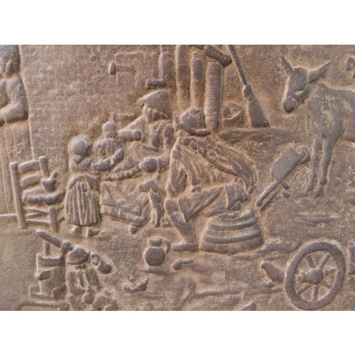 | Colore | Márron Si una placa de chimenea o morillos antigua posee una agradable pátina de óxido, solemos preservarla; de ese modo la placa permanece marrón. En el resto, nuestras placas de chimenea o morillos son tratadas con un pulimento térmico y por tanto tienen un color negro/grisáceo. Si usted prefiere tener una placa o morillos en negro, podemos entregar cualquier placa marrón en negro. Pero, por el contrario, no podemos entregar una placa negra en color marrón óxido. Tenga en cuenta que con el uso, la placa se volverá negra de todos modos en su sección central. |